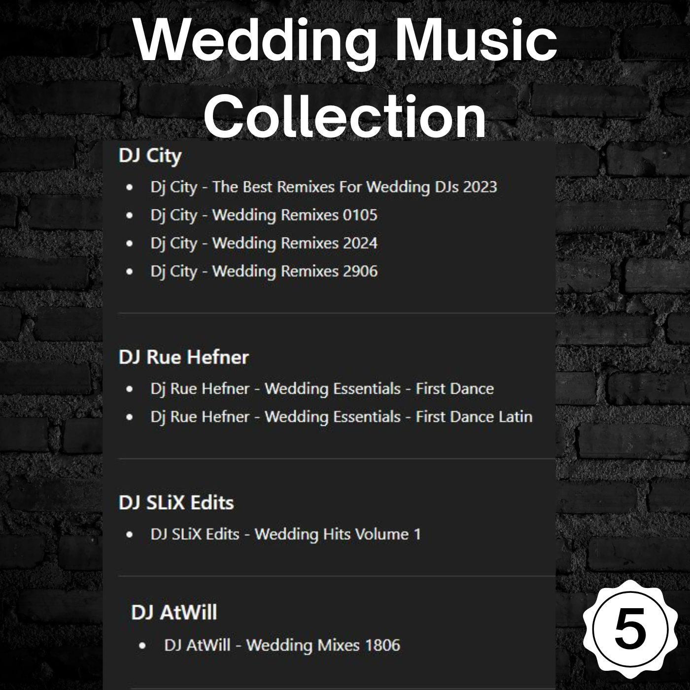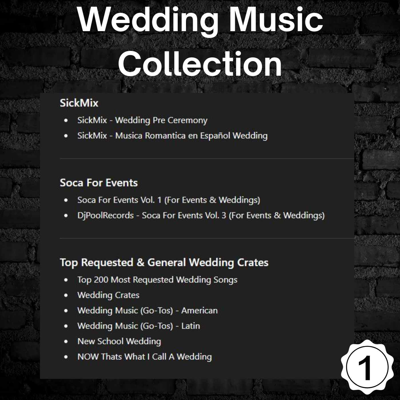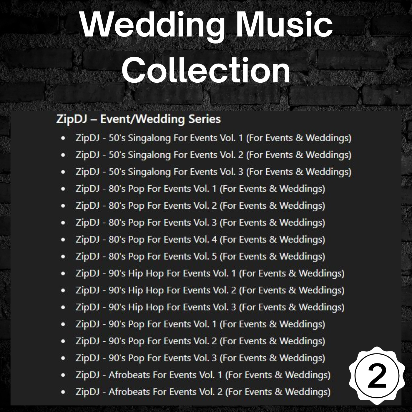 📂 Hundreds of thousands of tracks across every major genre: Hip-Hop, House, EDM, Rock, Pop, Latin, Throwbacks, Wedding, Event Classics & more.
